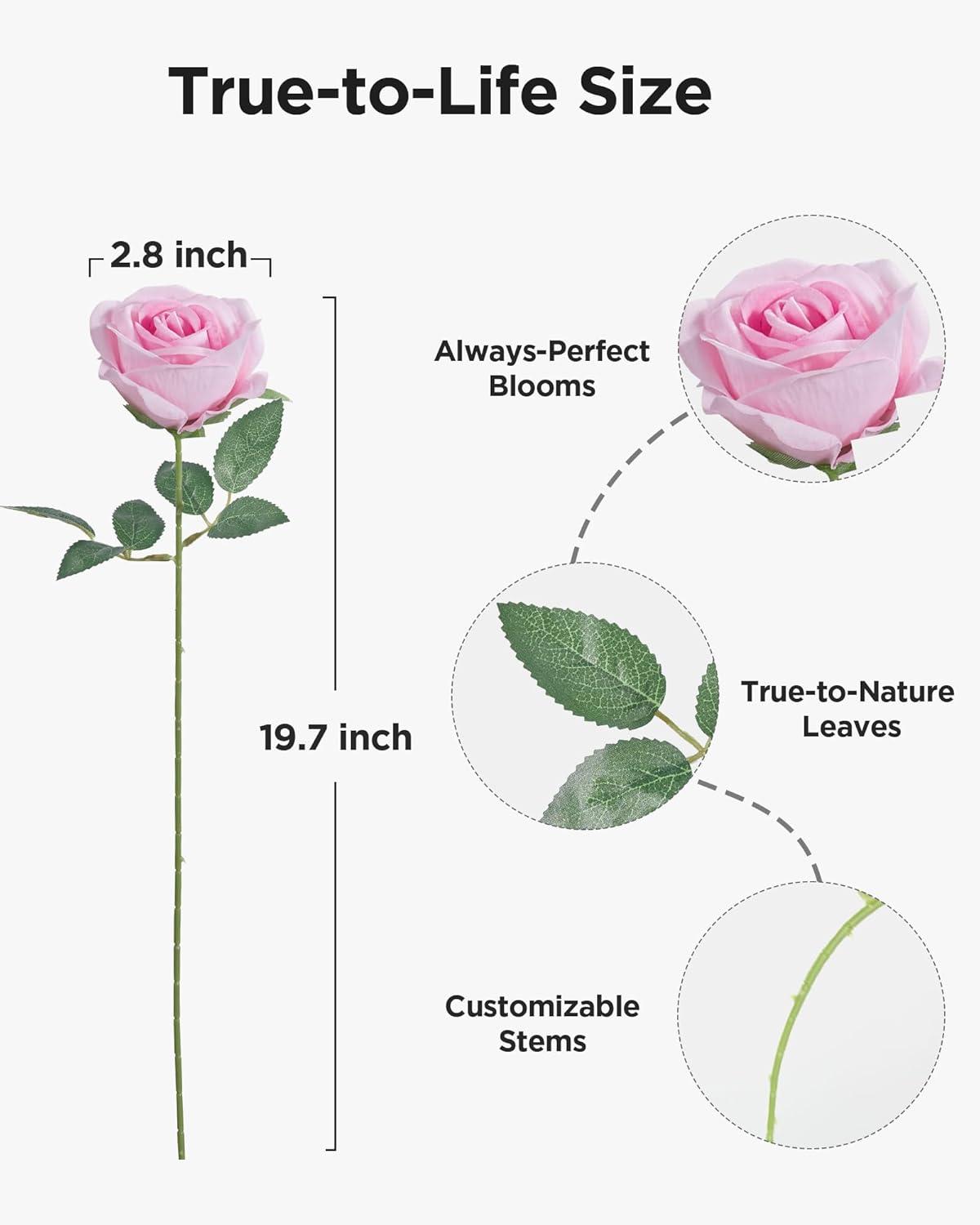 Perfect for Any Decor or Occasion: Whether you’re decorating your home, planning a wedding, or setting up a party, these silk roses are incredibly versatile. Use these fake roses in vases, centerpieces, wreaths, or DIY crafts—they effortlessly enhance any setting. Their timeless appeal makes these faux roses ideal for seasonal decor, photo backdrops, or even office spaces that need a pop of color.