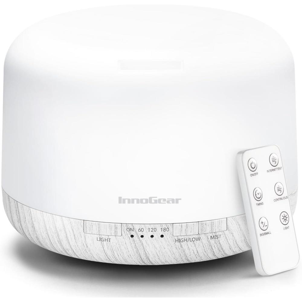 Prolonged Aromatherapy and Humidification: With a capacious 500ml and easy-to-clean water tank, the InnoGear oil diffuser can run for up to 18 hours (9-12h for strong mist and 16-18h for weak) without the need for mid-session refills, to elevate your sensory experience from the moment you wake for the day to the last few minutes before you drift off to sleep at night.
