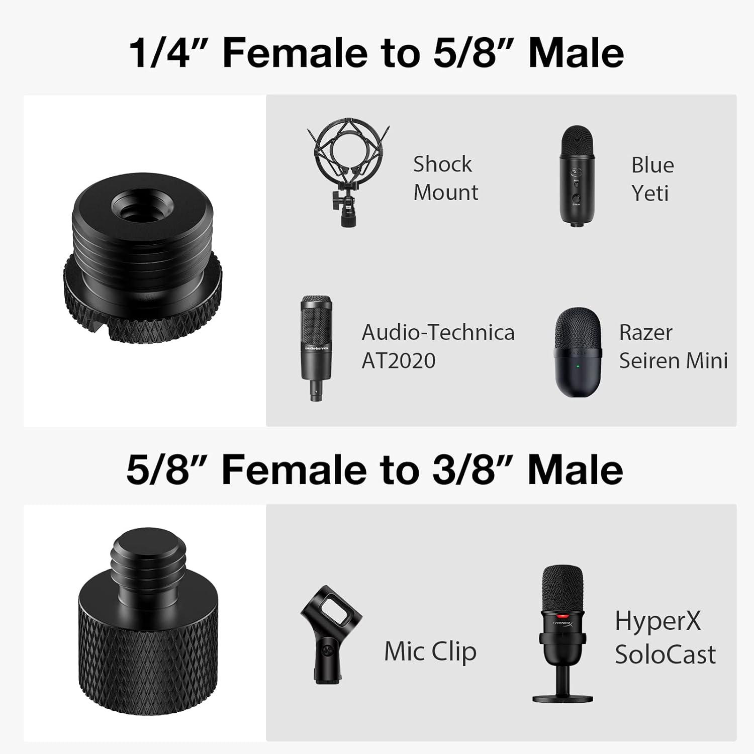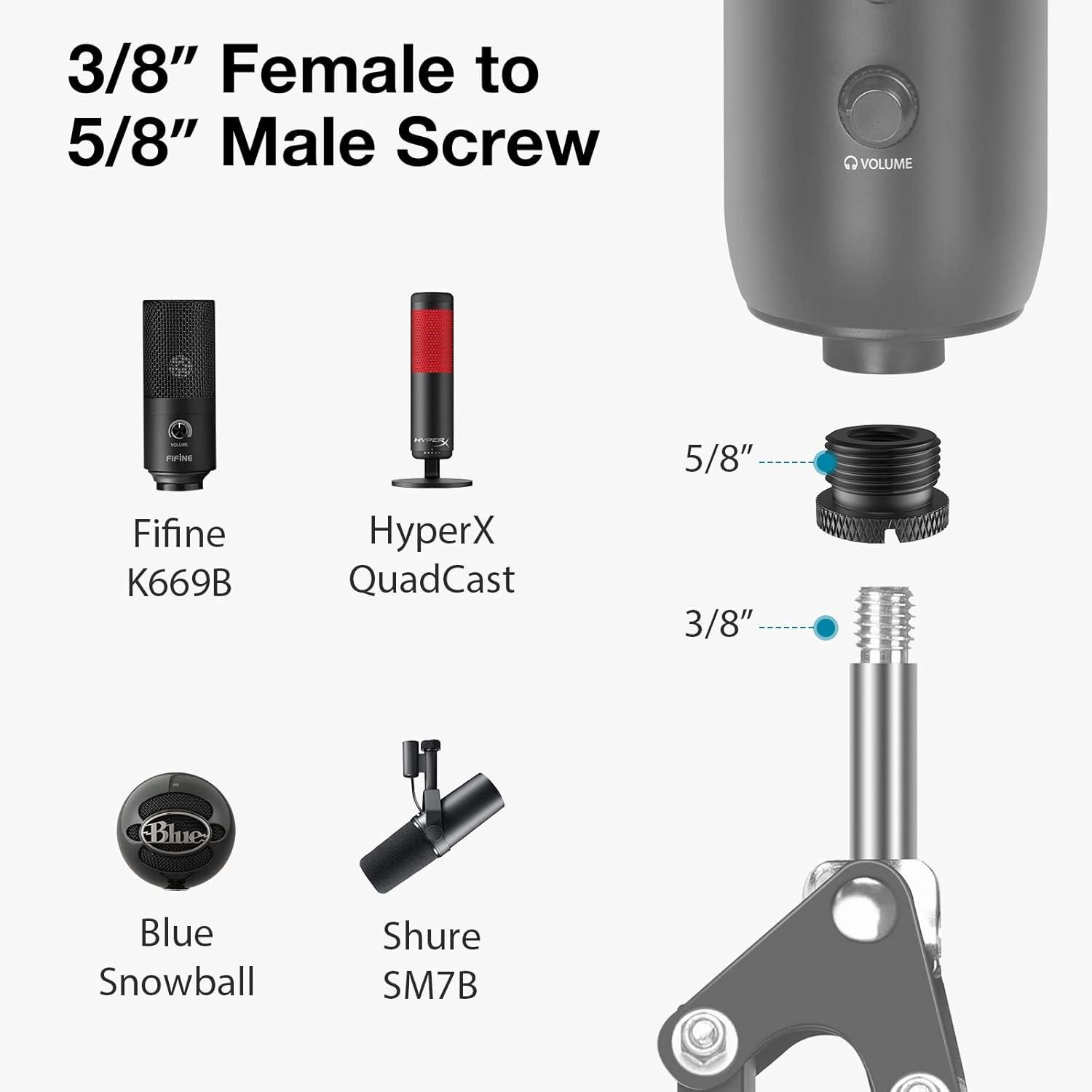 Wide Compatibility: The microphone stand adapters are compatible with most mic stands and microphones in the market, playing an efficient converting role. They are suitable for Hyper X QuadCast, Blue Yeti, Snowball, Yeti Nano, Shure SM7B, Fifine K669B, AT2020, mic clip and shock mount.