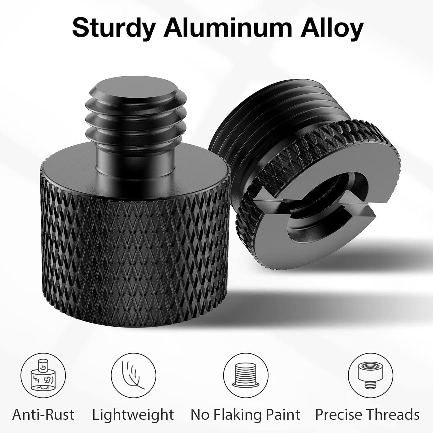 Sturdy Metal Material: Made of high-quality aluminum alloy, these screw adapters feature precise and smooth threads, solid and lasting, not easy to rust and fade. They are lightweight to carry around but can hold your microphones or cameras stably.