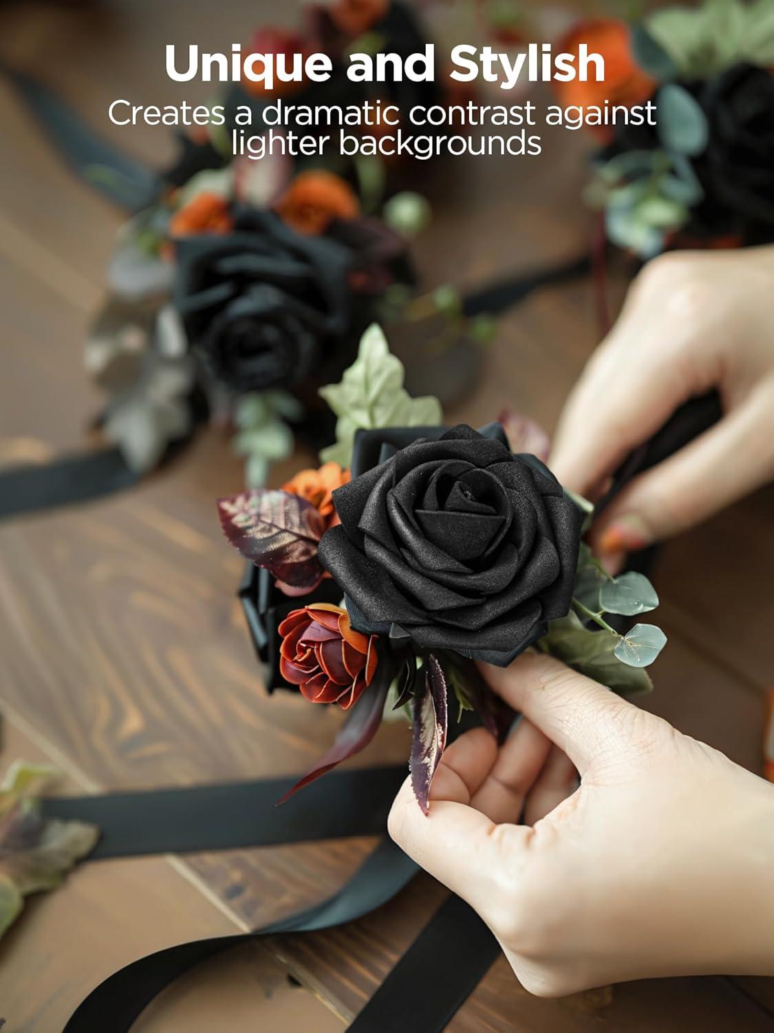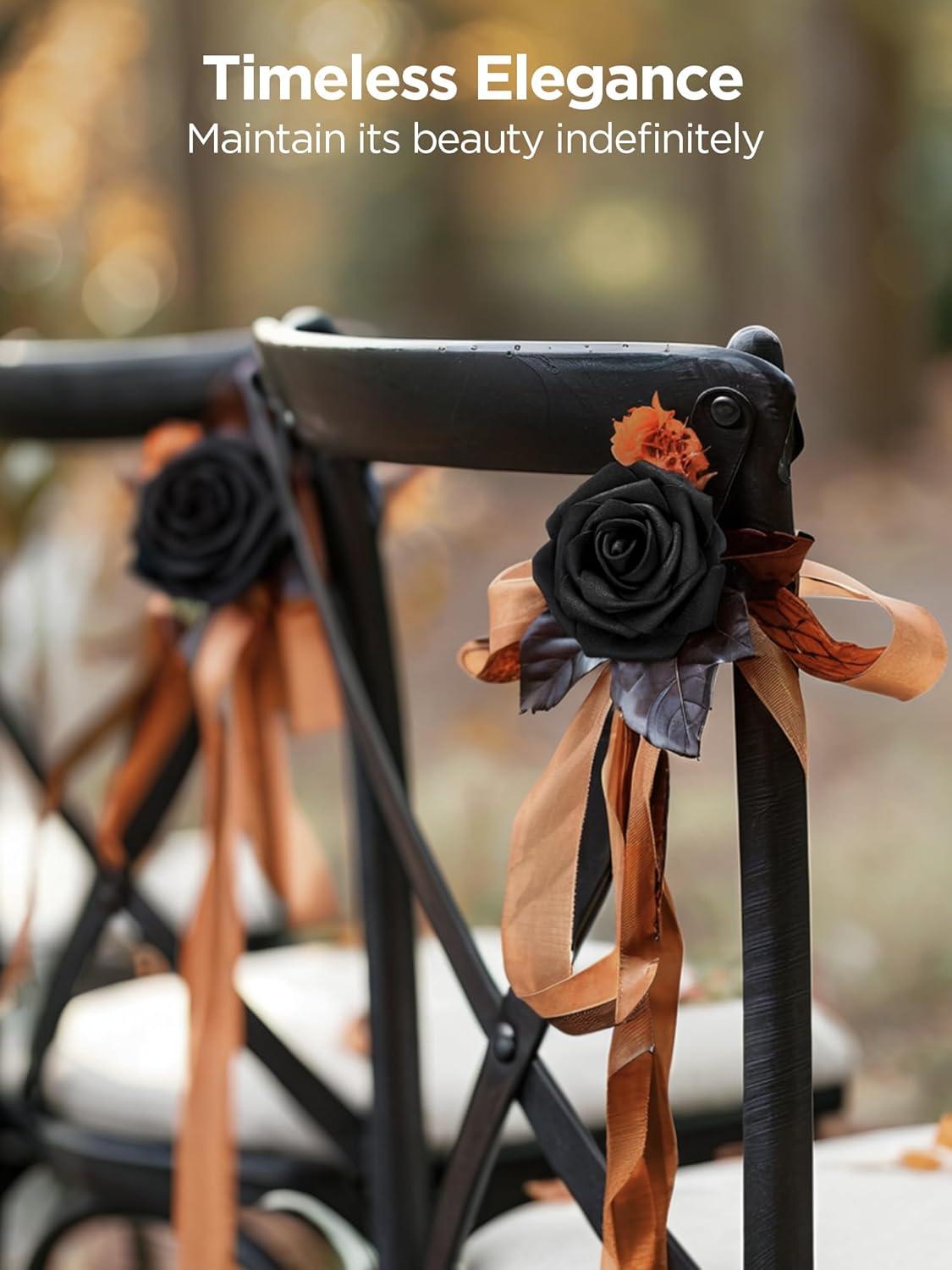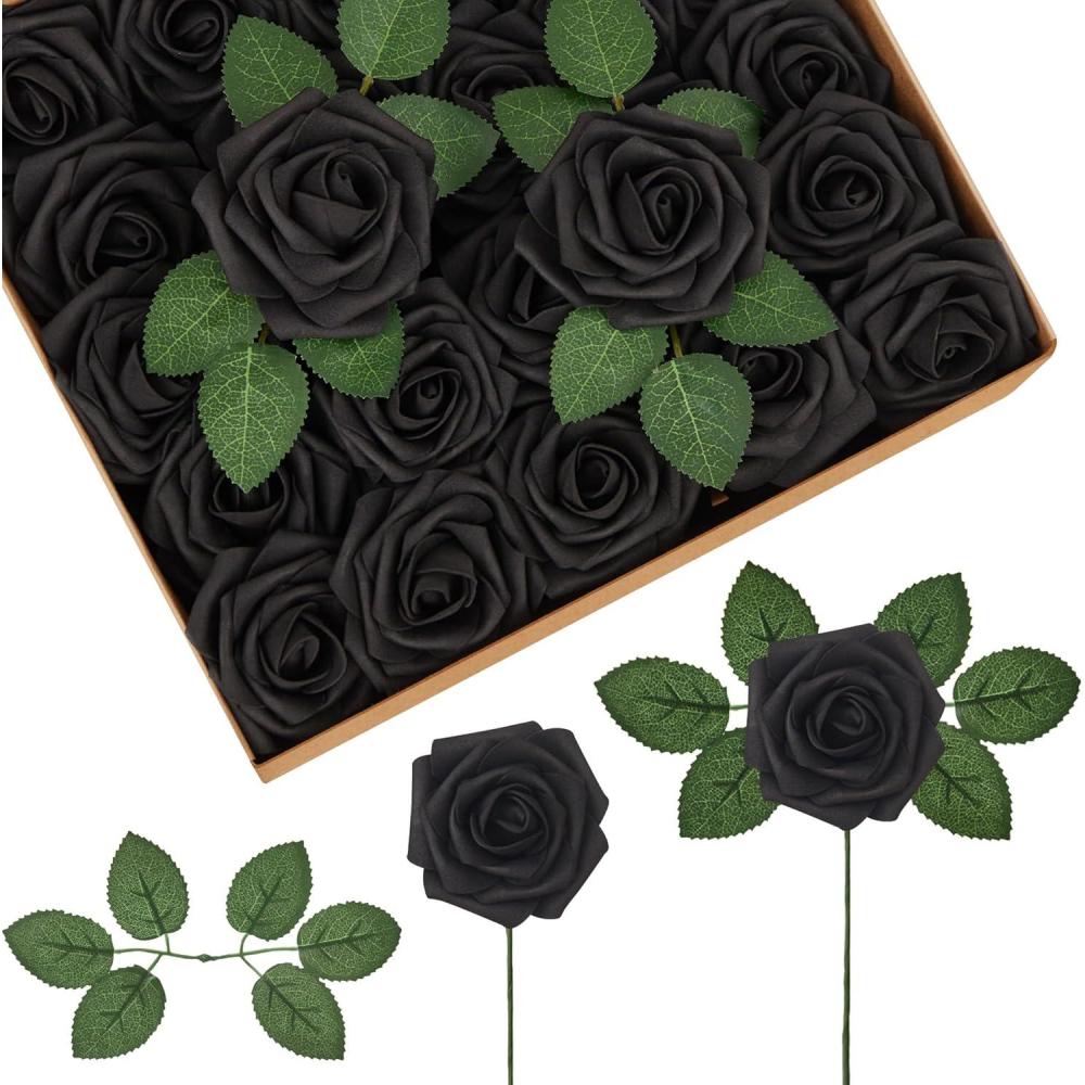 imageInnoGear Artificial Flowers 50 Pcs Dark Red Foam Fake Roses Bulk with Stems for Decoration Celebration DIY Wedding Bouquets Centerpieces Bridal Shower Party Christmas TreeBlack