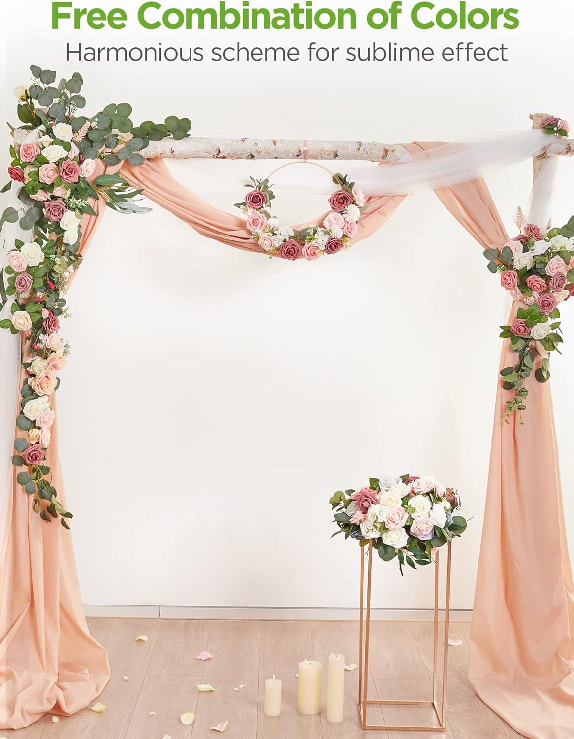 50 Artificial Flowers with 10 Green Leaves: With an innovative flexible stem design, these DIY artificial roses offer unparalleled adaptability. Easily bend, cut, or remove stems to suit your creative needs, whether you're crafting bouquets, boutonnieres, cake decorations, headbands, or any other imaginative floral arrangement.