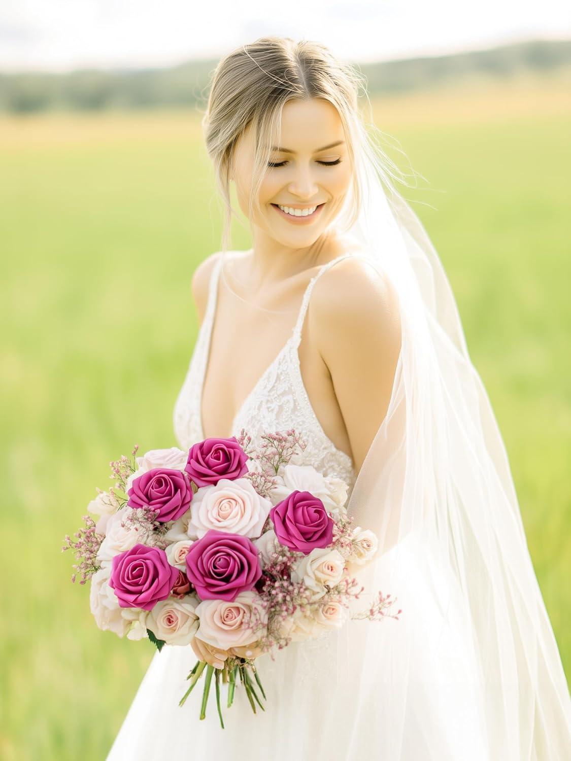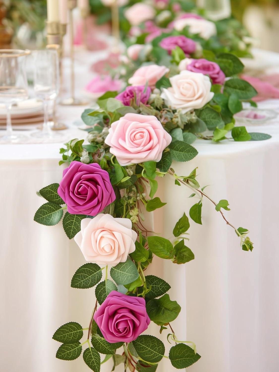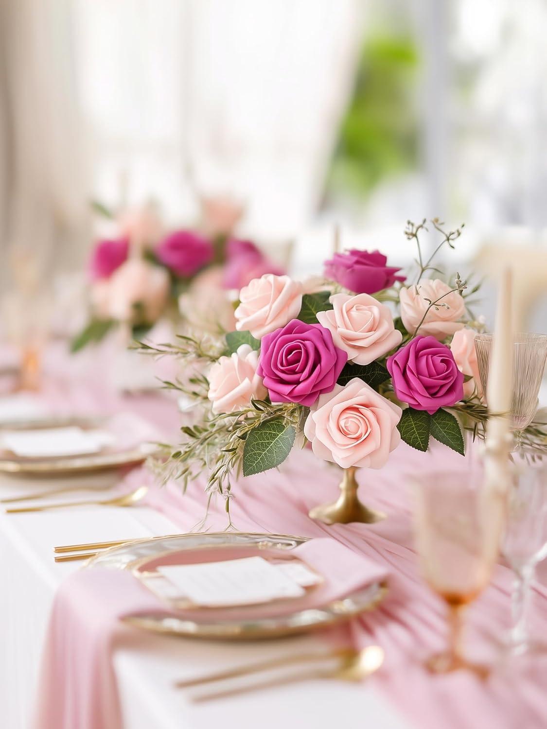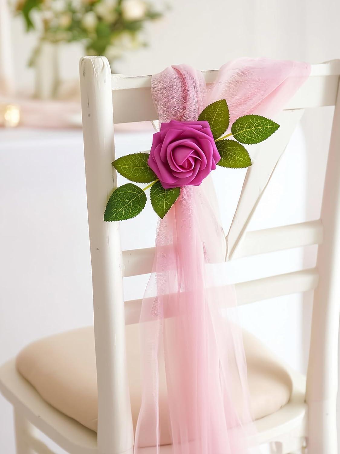 50 Artificial Flowers with 10 Green Leaves: With an innovative flexible stem design, these DIY artificial roses offer unparalleled adaptability. Easily bend, cut, or remove stems to suit your creative needs, whether you're crafting bouquets, boutonnieres, cake decorations, headbands, or any other imaginative floral arrangement.