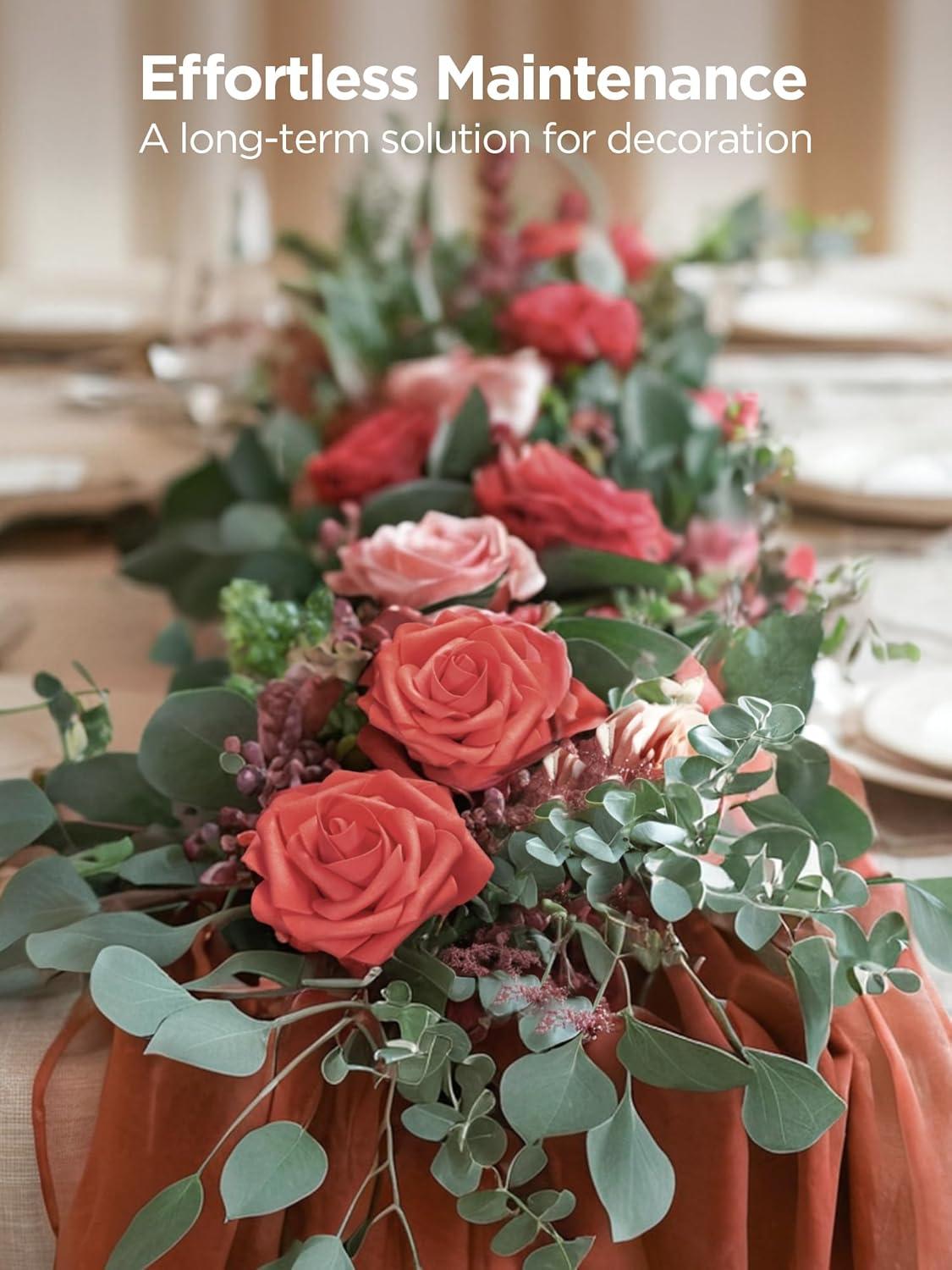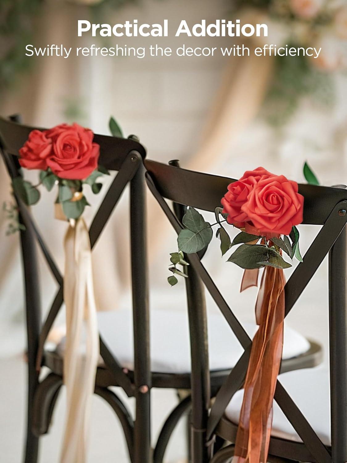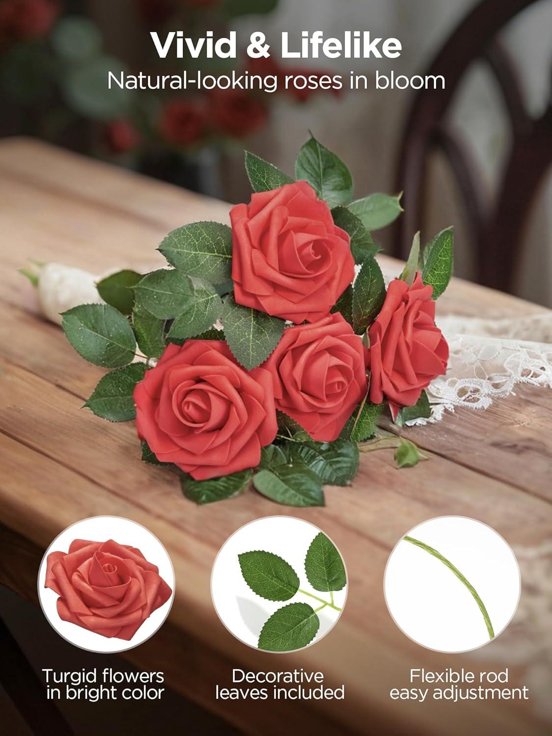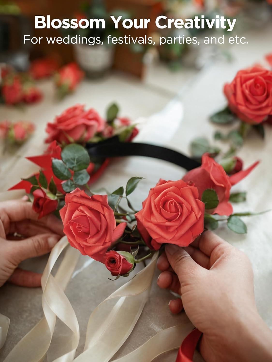 50 Artificial Flowers with 10 Green Leaves: With an innovative flexible stem design, these DIY artificial roses offer unparalleled adaptability. Easily bend, cut, or remove stems to suit your creative needs, whether you're crafting bouquets, boutonnieres, cake decorations, headbands, or any other imaginative floral arrangement.