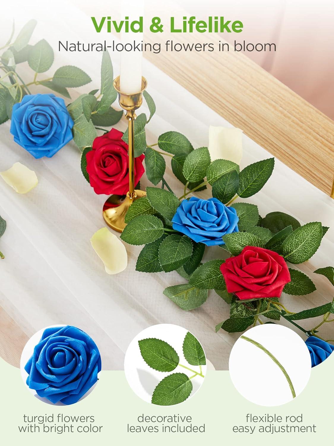 InnoGear Artificial Flowers, 50 Pcs Dark Red Foam Fake Roses Bulk with Stems for Decoration Celebration DIY Wedding Bouquets Centerpieces Bridal Shower Party Christmas Tree(Royal Blue)