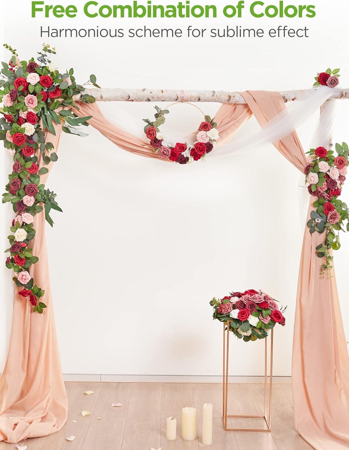 50 Artificial Flowers with 10 Green Leaves: With an innovative flexible stem design, these DIY artificial roses offer unparalleled adaptability. Easily bend, cut, or remove stems to suit your creative needs, whether you're crafting bouquets, boutonnieres, cake decorations, headbands, or any other imaginative floral arrangement.
