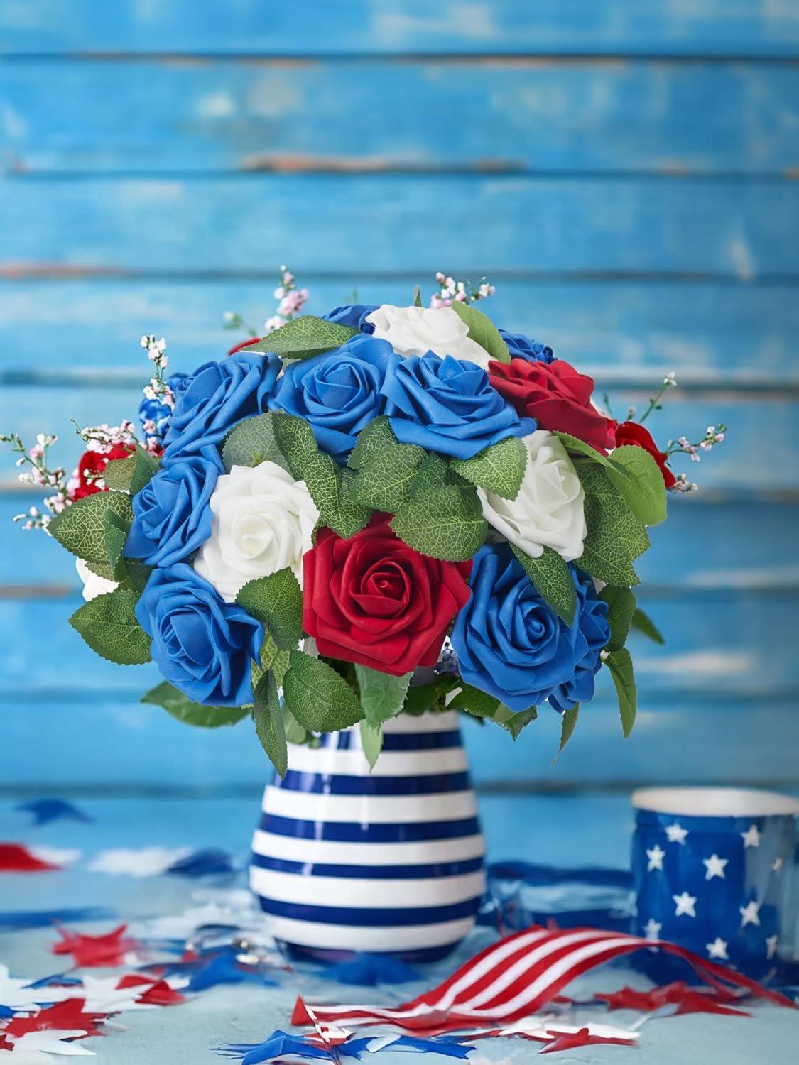 imageInnoGear Artificial Flowers 50 Pcs Dark Red Foam Fake Roses Bulk with Stems for Decoration Celebration DIY Wedding Bouquets Centerpieces Bridal Shower Party Christmas TreeRoyal Blue