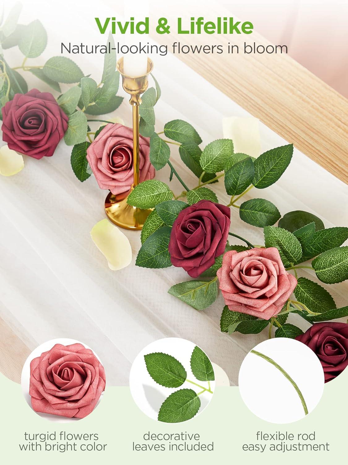 InnoGear Artificial Flowers, 50 Pcs Dark Red Foam Fake Roses Bulk with Stems for Decoration Celebration DIY Wedding Bouquets Centerpieces Bridal Shower Party Christmas Tree(Shades of Dusty)