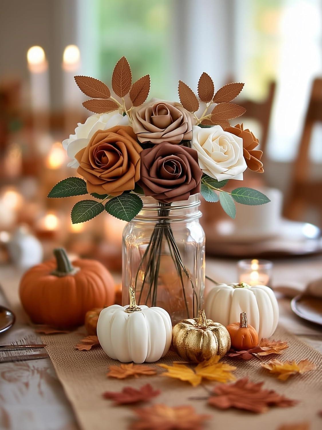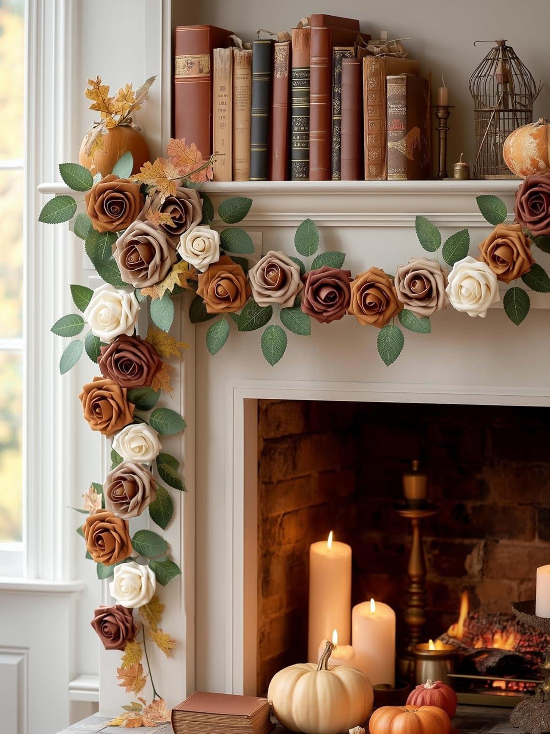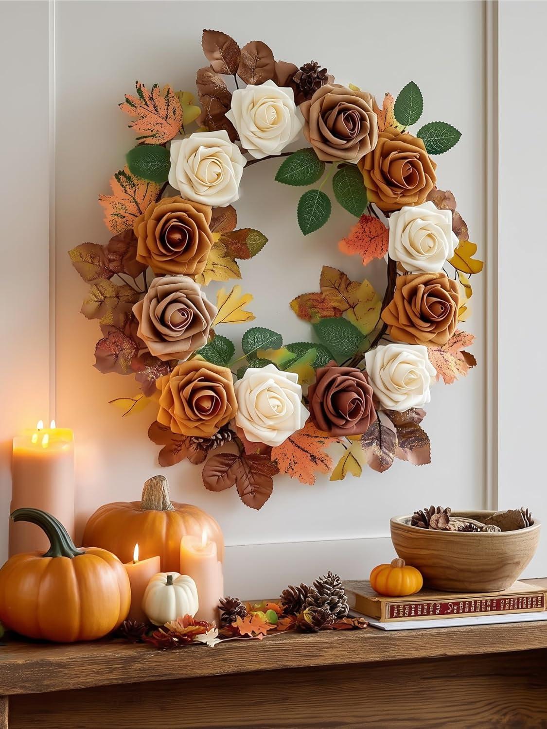 imageInnoGear Artificial Flowers 50 Pcs Dark Red Foam Fake Roses Bulk with Stems for Decoration Celebration DIY Wedding Bouquets Centerpieces Bridal Shower Party Christmas TreeShades of Earth Tones
