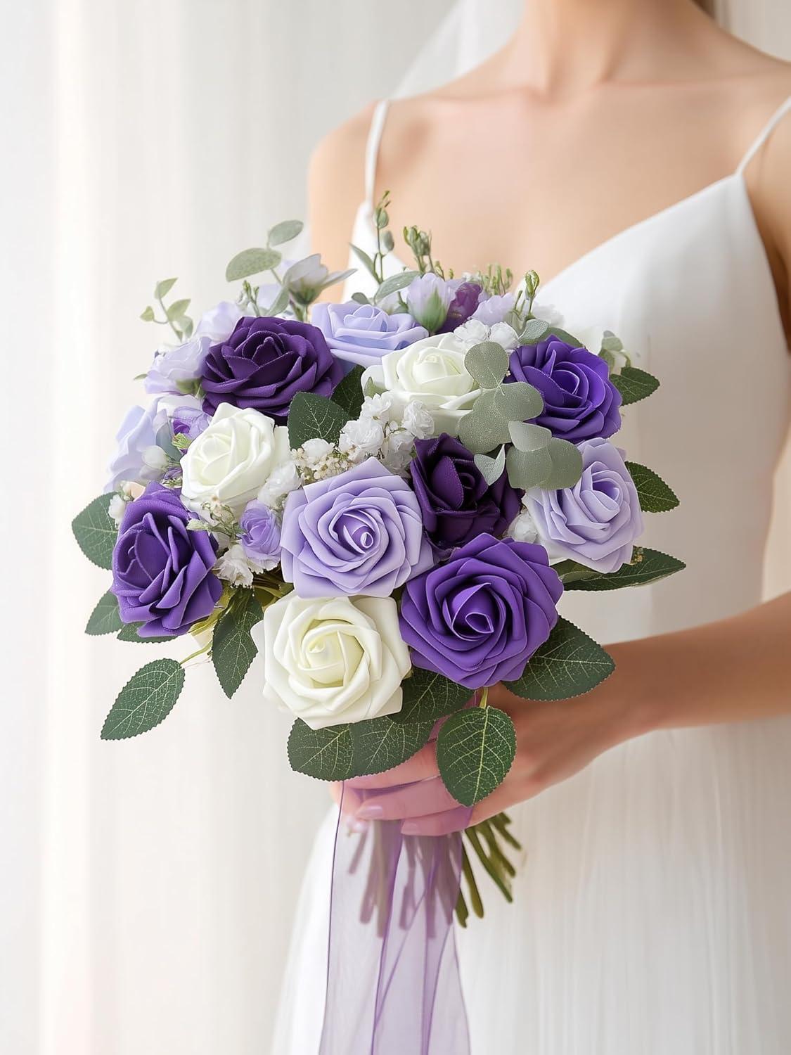 imageInnoGear Artificial Flowers 50 Pcs Dark Red Foam Fake Roses Bulk with Stems for Decoration Celebration DIY Wedding Bouquets Centerpieces Bridal Shower Party Christmas TreeShades of Purple