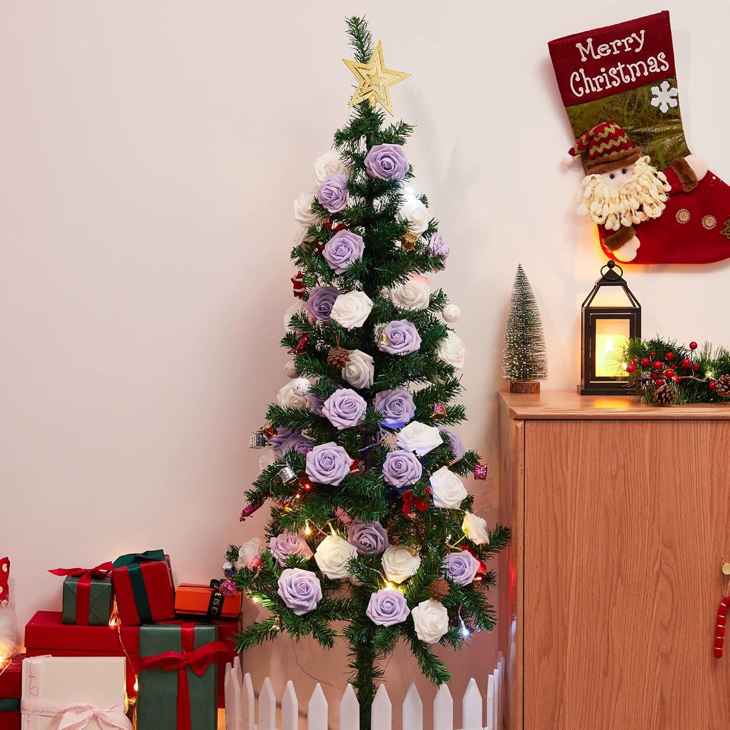 InnoGear Artificial Flowers, 50 Pcs Dark Red Foam Fake Roses Bulk with Stems for Decoration Celebration DIY Wedding Bouquets Centerpieces Bridal Shower Party Christmas Tree(Shades of Purple)