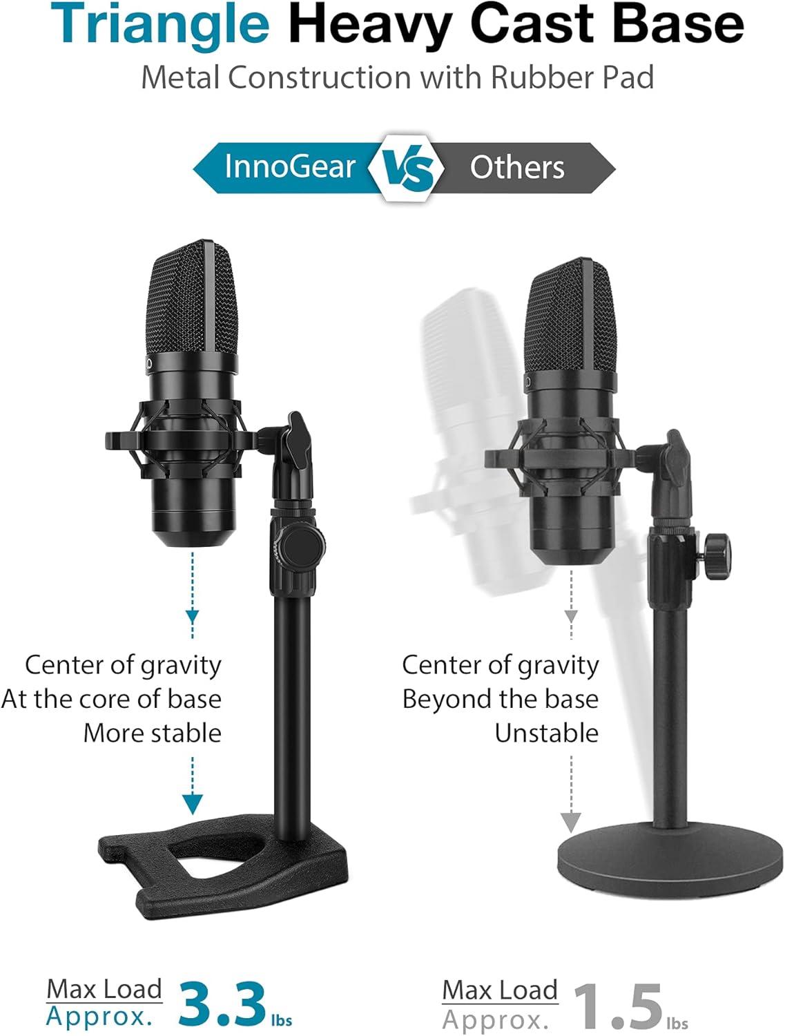 Triangle Gravity Design: Unlike other mic stand with central gravity, InnoGear table mic stand provides more stability and precise balance to keep microphone from topple-over.