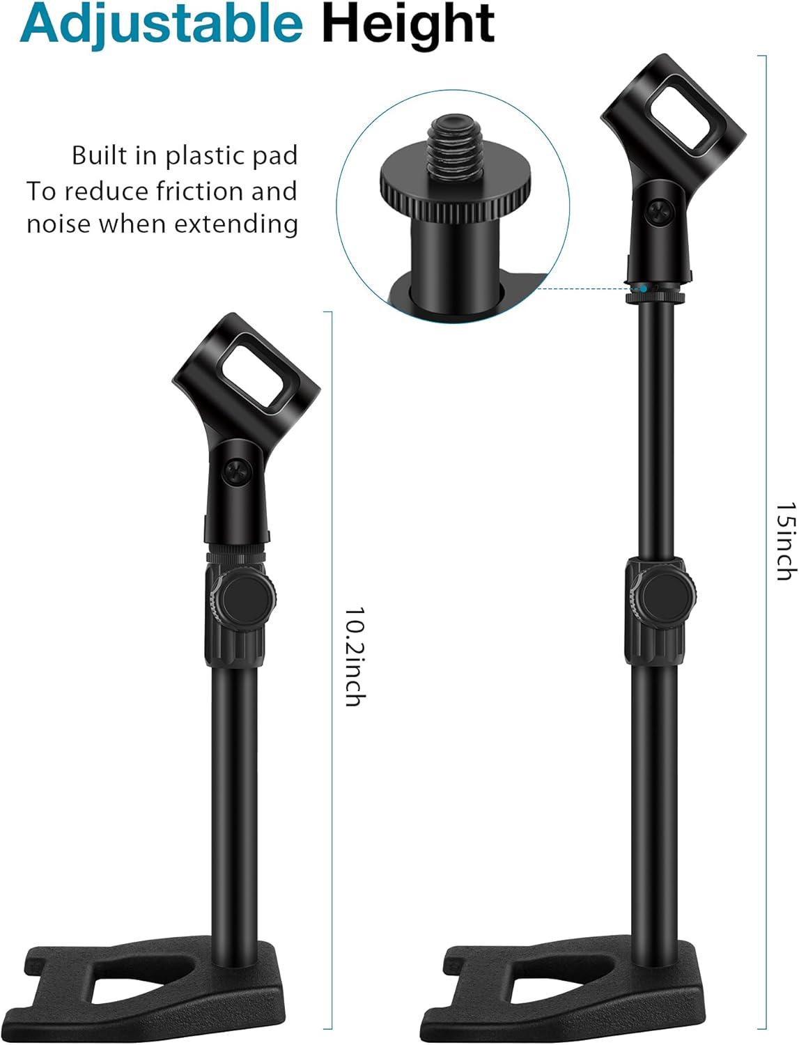 Adjustable Height: This stand measures 10.2 inches in height and is adjustable up to 15 inches to allow for optimal mic positioning.
