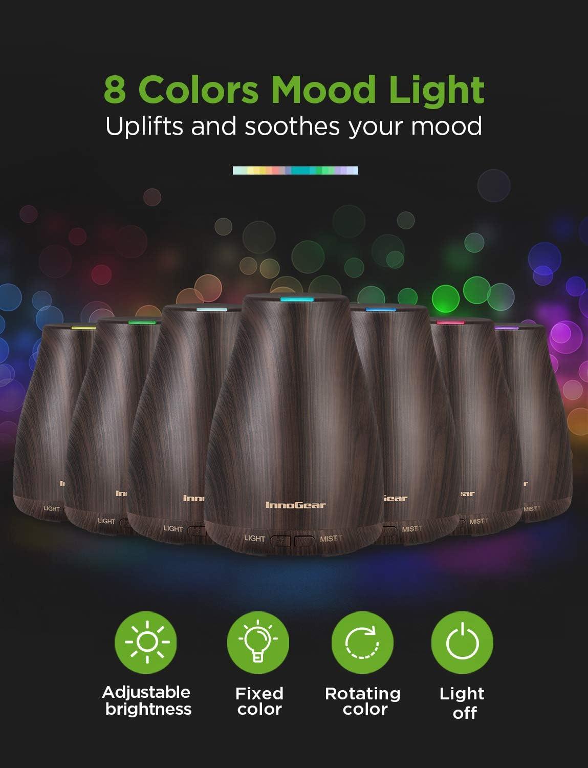 imageInnoGear Essential Oil Diffuser Premium 5in1 Diffusers for Home Scent Aromatherapy Diffuser Air Desk Humidifier for Bedroom Large Room Office 7 Color LED 2 Mist Mode Waterless Auto Off Basic WhiteBrown