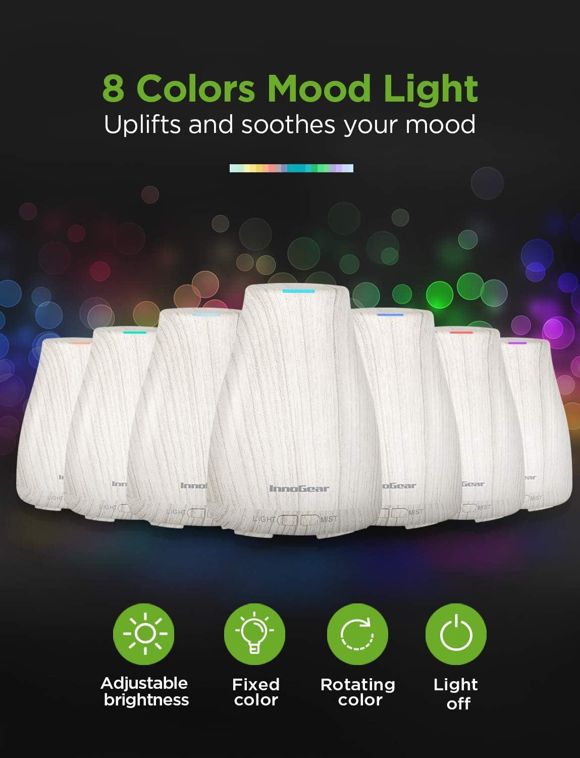 InnoGear Essential Oil Diffuser, Premium 5-in-1 Diffusers for Home Scent Aromatherapy Diffuser Air Desk Humidifier for Bedroom Large Room Office 7 Color LED 2 Mist Mode Waterless Auto Off, Basic White(Brown Base)