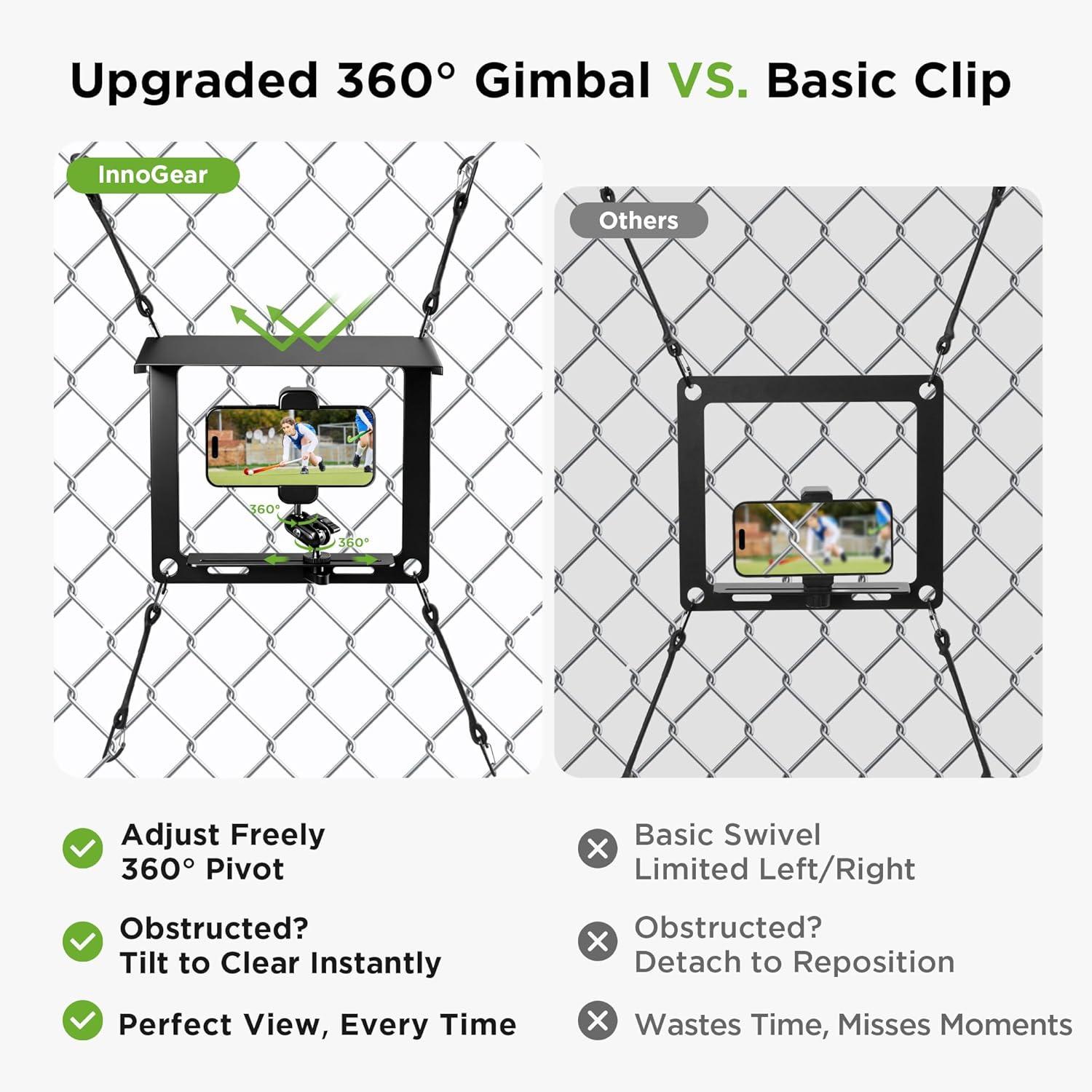 Unmatched Universal Compatibility: This ultimate all-in-one cell phone fence mount serves every modern content creator. Perfectly stream from your smartphone, capture action with a GoPro, or broadcast seamlessly with a Mevo Start. The fence mount includes a dedicated phone holder and action camera connector for a secure, professional setup with any device.