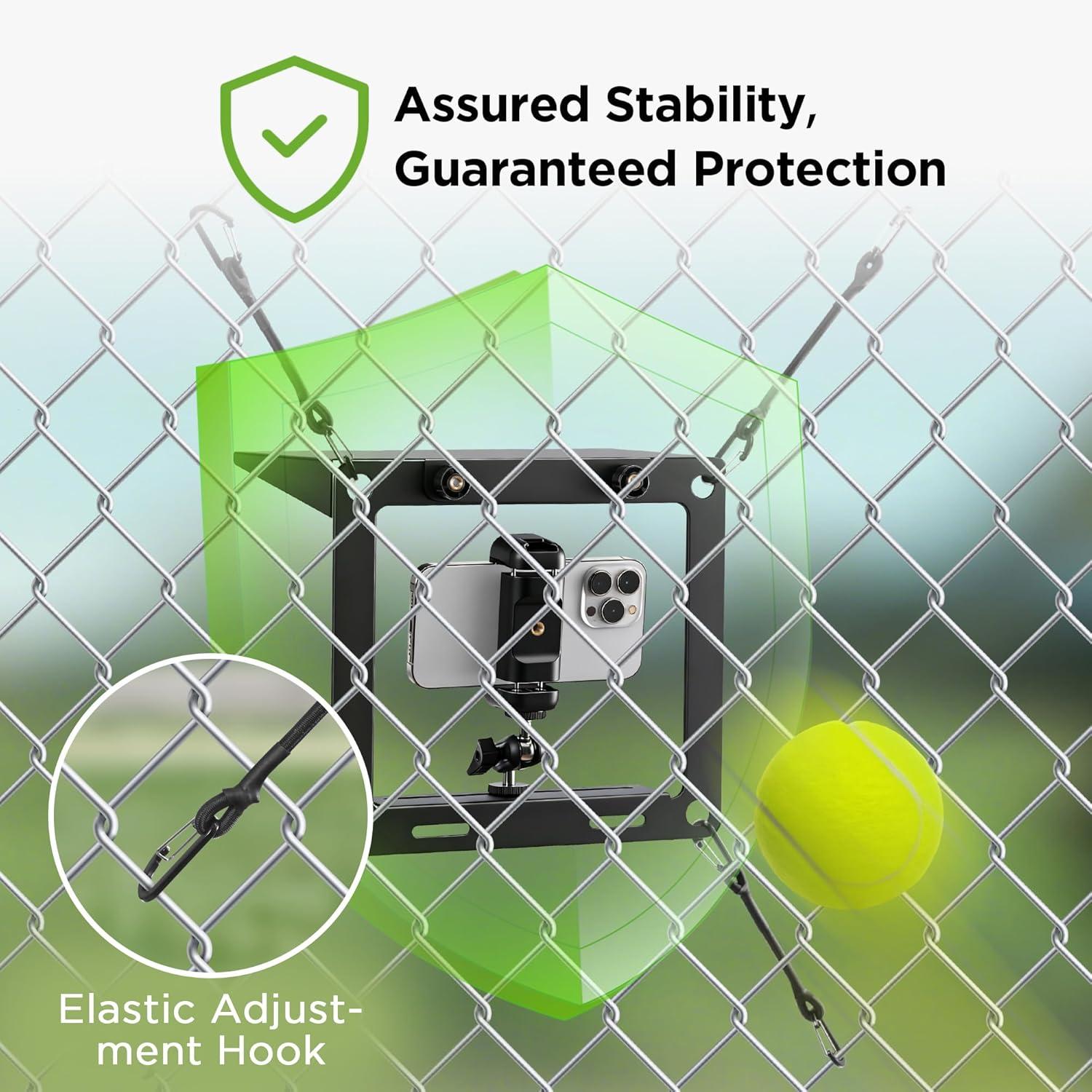 Tool-Free Instant Assembly: Go from bag to broadcast in under a minute, entirely tool-free. The ingenious design with pre-installed bungee cords and simple knob assemblies securely attaches the bracket and shade to any fence instantly. Skip the frustrating tools and complex instructions. This swift setup of the cell phone fence mount ensures you never miss a moment of the action.