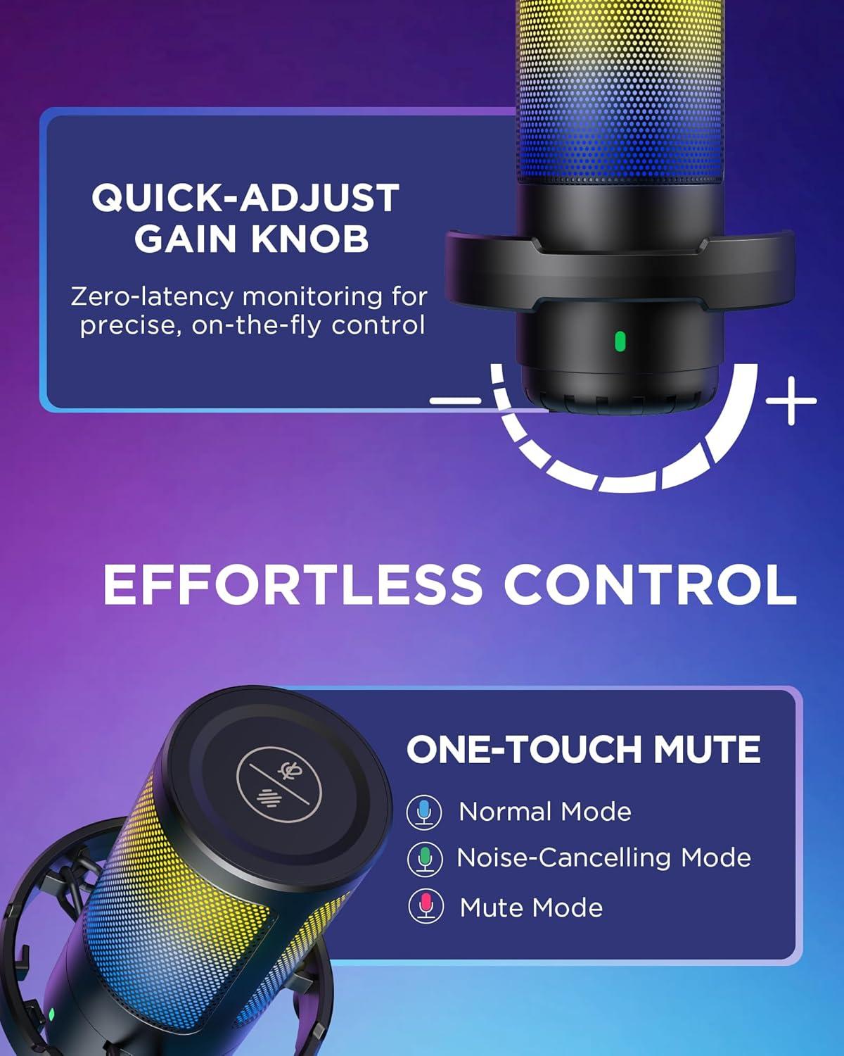 Advanced Noise Cancellation: Equipped with cutting-edge noise cancellation, this gaming mic minimizes background noise with precision. Whether you're streaming, gaming, or recording, it delivers unmatched voice clarity, ensuring your teammates and audience hear every word. Ideal for intense gaming sessions or collaborative gameplay, this microphone for pc enhances team communication and strategy execution.