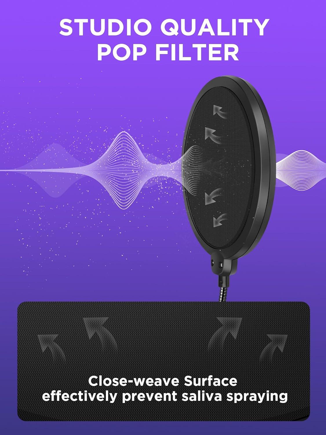 All-In-One Combo: Package includes all the items you need for studio recording and live sound, a microphone stand, pop filter and 1 Pack microphone windscreen