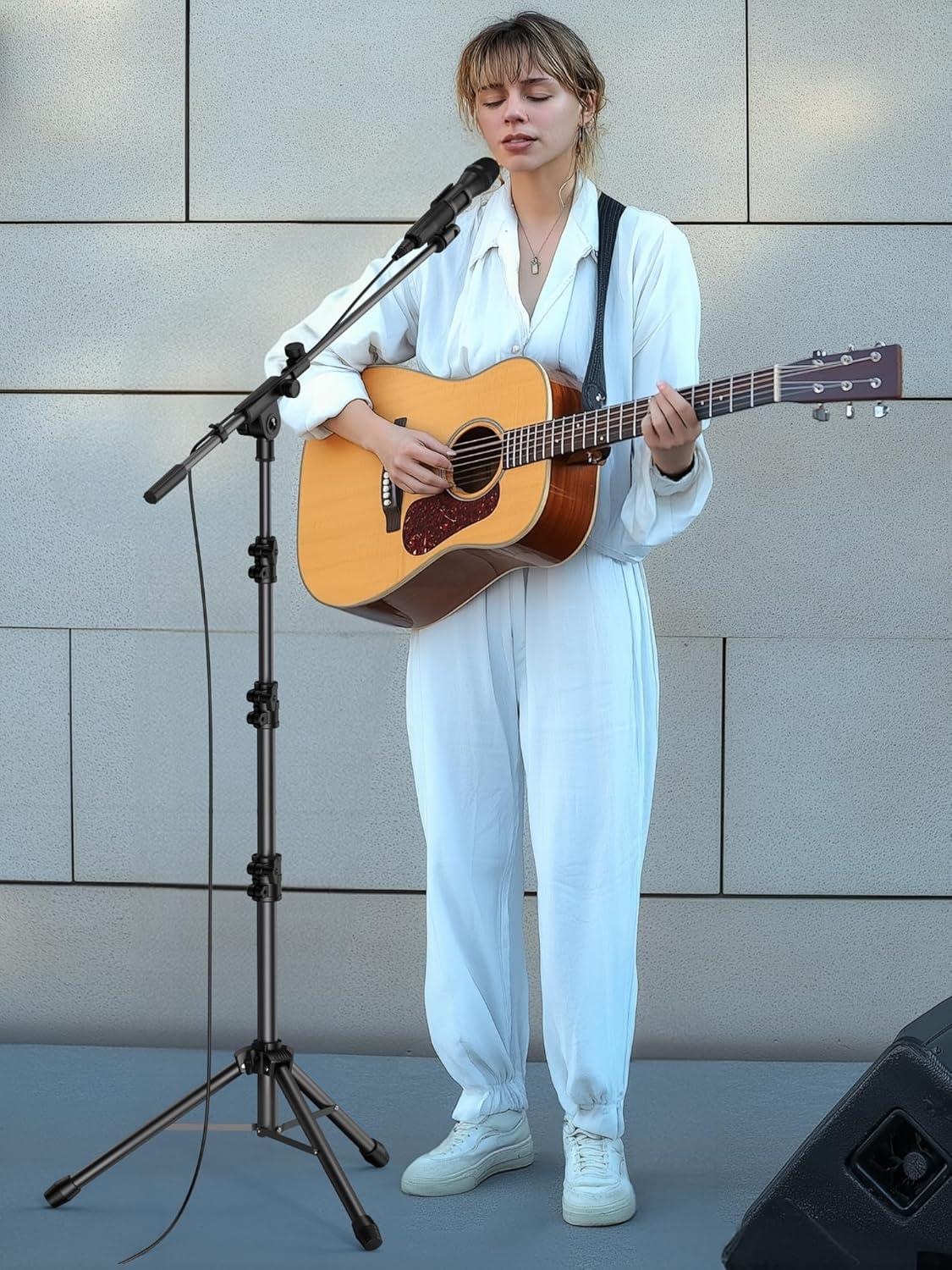 Adjustable Height & Solid: The height of the microphone stand with boom arm is adjustable from 28.1 inches to 89.8 inches by adjusting the knobs, perfect for people in all age groups. It features upgraded supporting structures for better load-bearing capacity, holding your microphone in position.
