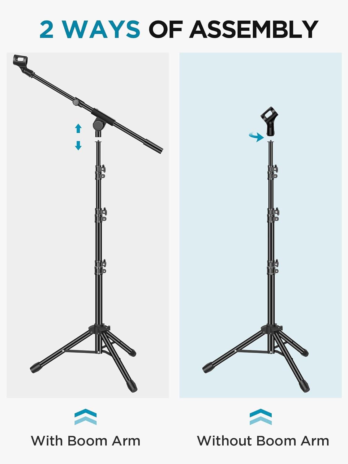 Steady Tripod Stand: The high-quality thickened steel poles enhance the exceptional stability and durability of this mic stand. Compared to other lighter stands that are easy to tip over, our mic tripod stand is as heavy as 4.0lbs, serving indoor and outdoor use.