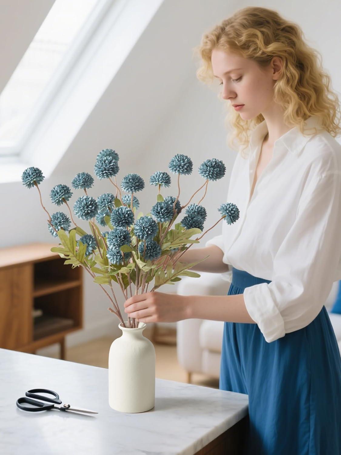 Hassle-Free, Everlasting Beauty: Unlike real flowers, these silk artificial pompon mums never shed pollen or petals, ensuring a clean, mess-free display in any setting. With no need for watering, trimming, or maintenance, these fake flowers stay perfectly fresh year-round—simply arrange them once and enjoy timeless elegance. A practical, maintenance-free decor solution for any space.