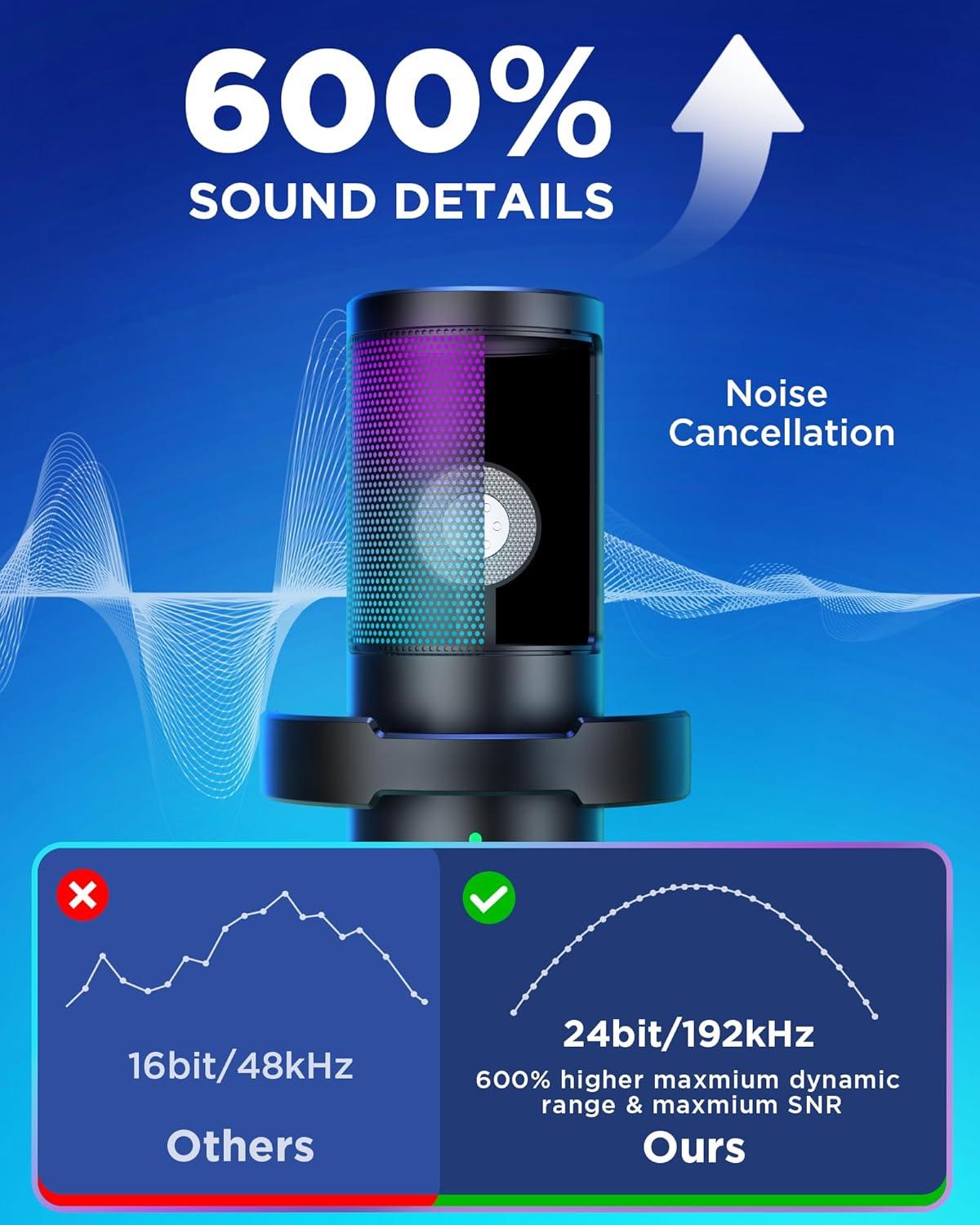 Advanced Noise-Cancelling Tech: Eliminate distractions with noise cancellation that filters out background noise with precision. Whether you're streaming, gaming, or recording, this gaming mic ensures your voice is crystal-clear, enhancing communication and strategic gameplay for competitive teams.
