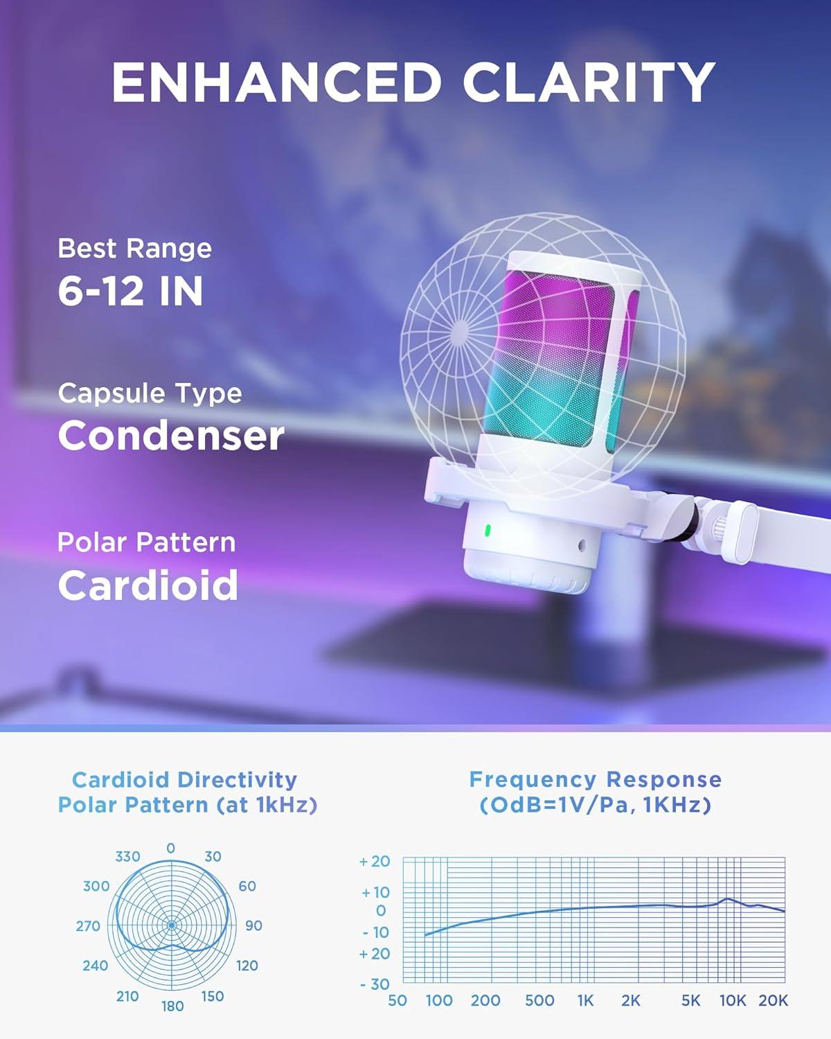 Crystal-Clear Voice Capture: The advanced condenser microphone for PC is equipped with upgraded cardioid condenser capsule, delivers smooth, crisp, and clear sound by focusing on your voice, reducing ambient noise during gameplay or streaming.