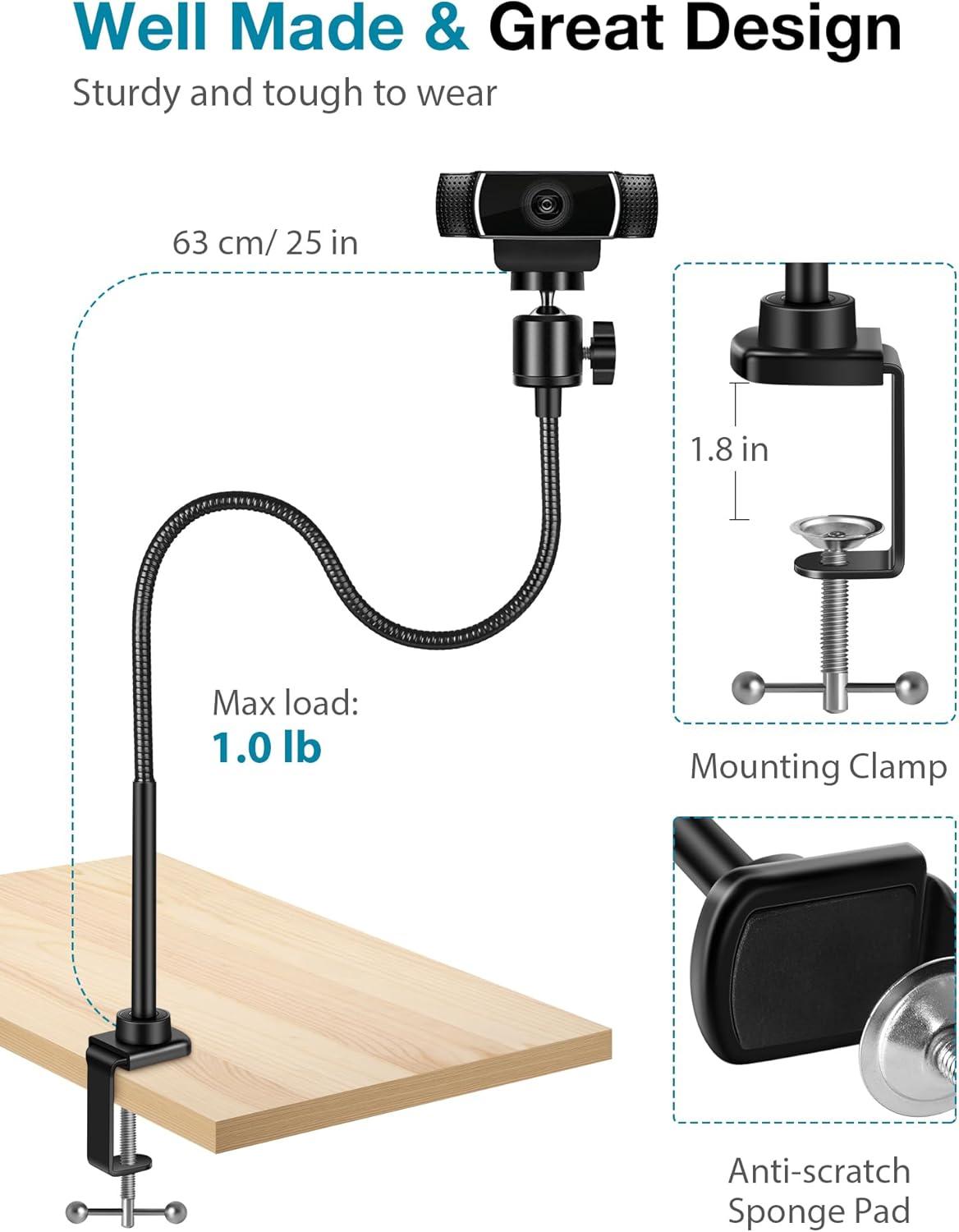 Adjustable and Flexible: This gooseneck stand is flexible to adjust the position of your webcam. It can be positioned at whatever angle you need it at. Meanwhile, it is of high quality and sturdy enough to support your webcams or phones.