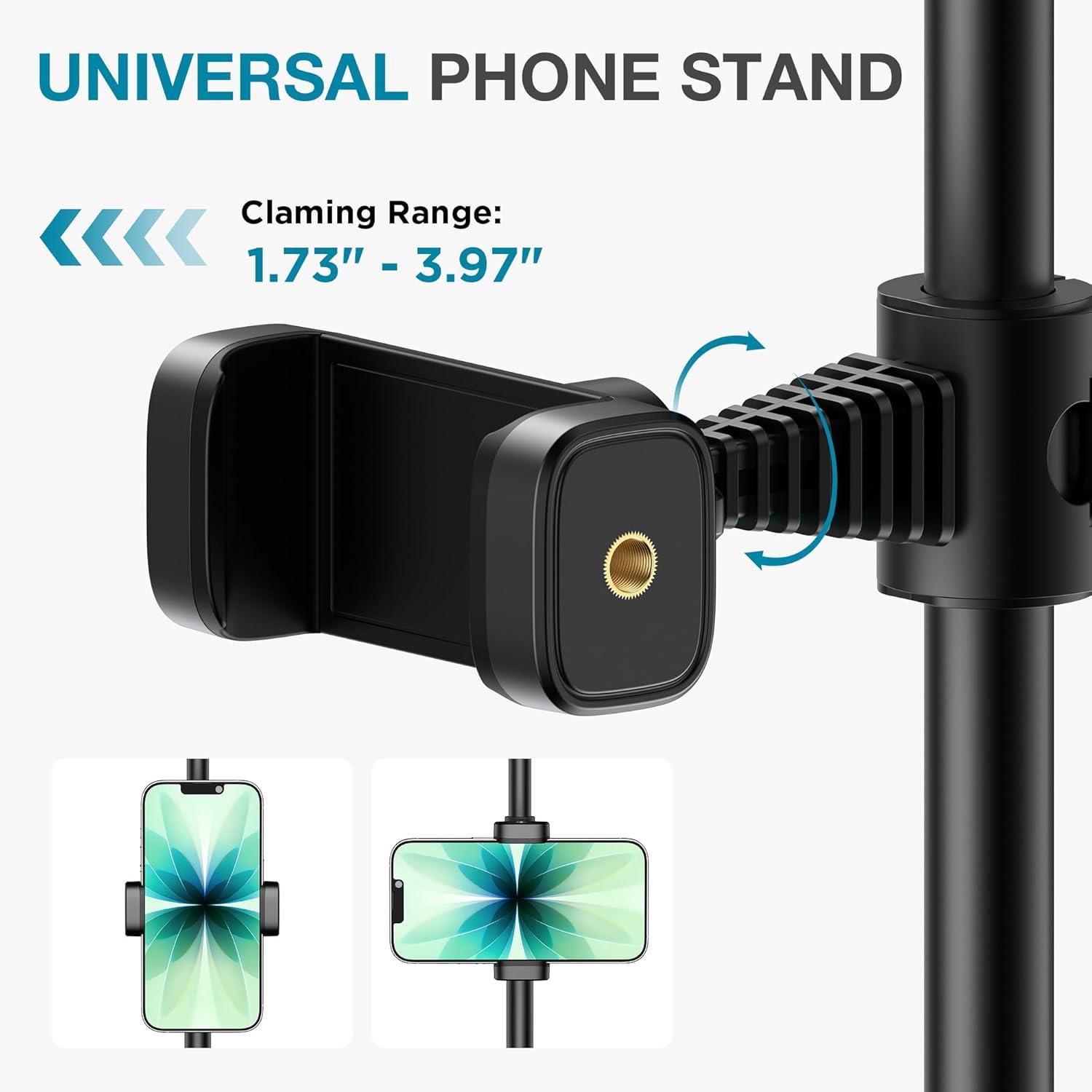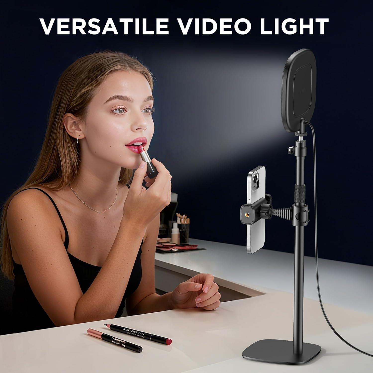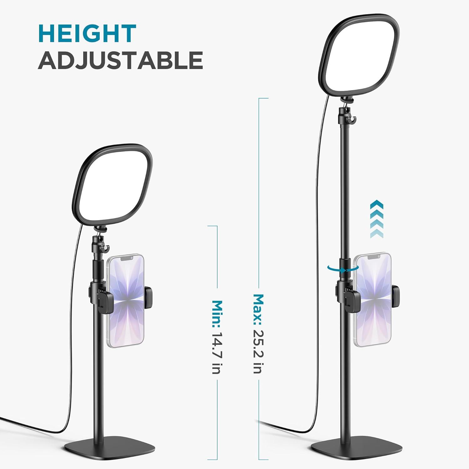 Adjustable & Versatile: Elevate your video presence from any desk with our versatile conference light, featuring a generously adjustable telescopic tube that seamlessly extends from 14.7″ to 25.2″ for perfect positioning, while the included phone holder boasts a wide clamping range of 1.73″ to 3.97″ to securely accommodate your smartphone, ensuring both you and your content are always perfectly lit and professionally presented in both horizontal and vertical formats.